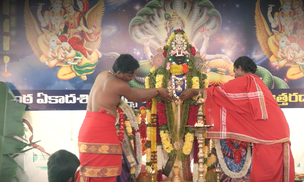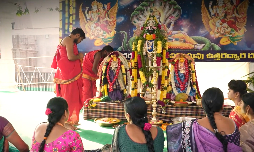 On the holy occasion of Mukkoti Ekadashi, Sri Punyalingeswara Temple was adorned with divine...